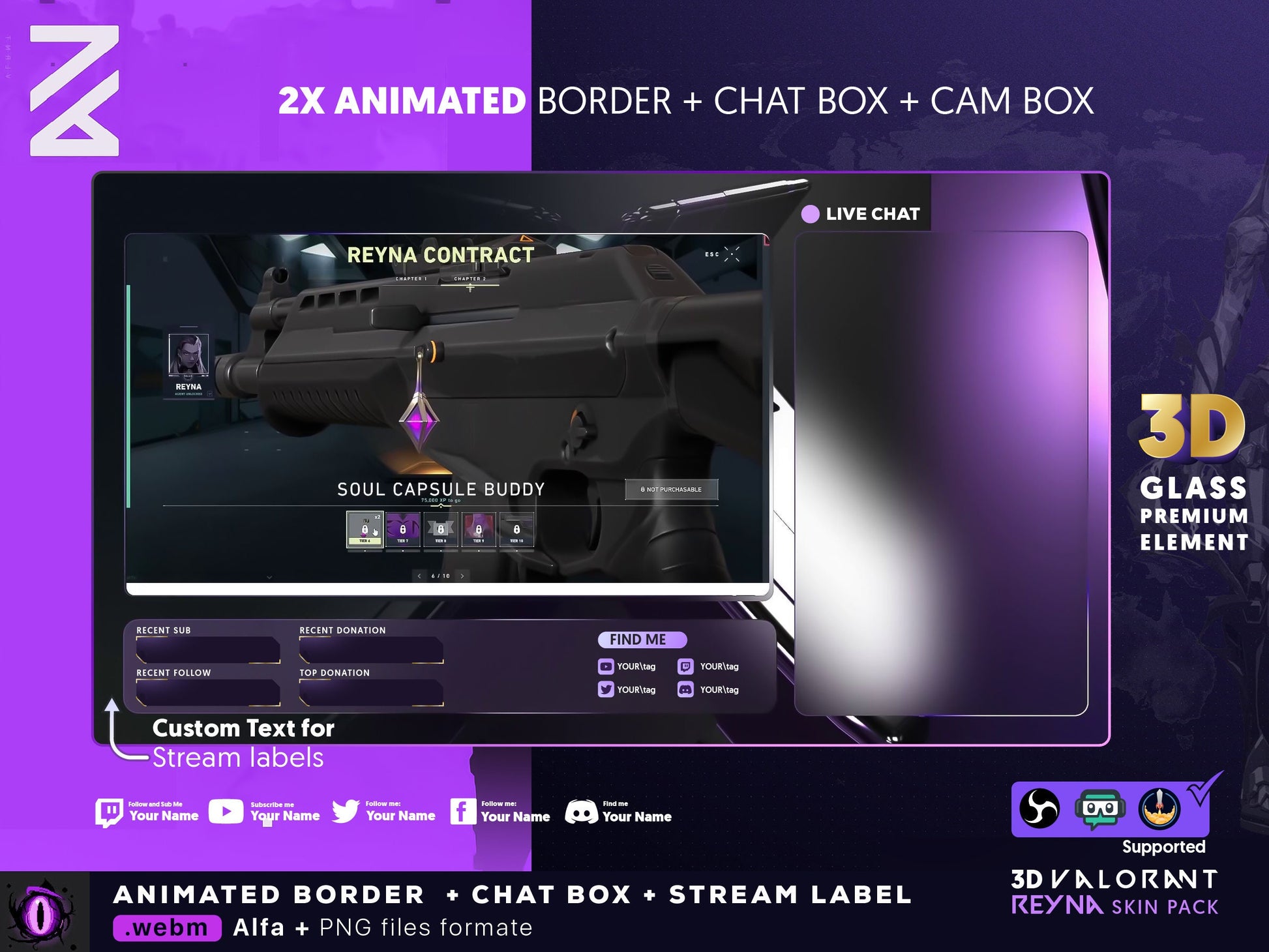 3D Animated Twitch Overlay | Valorant Reyna Skin animated overlay is available for instant downloadable .zip format🎮