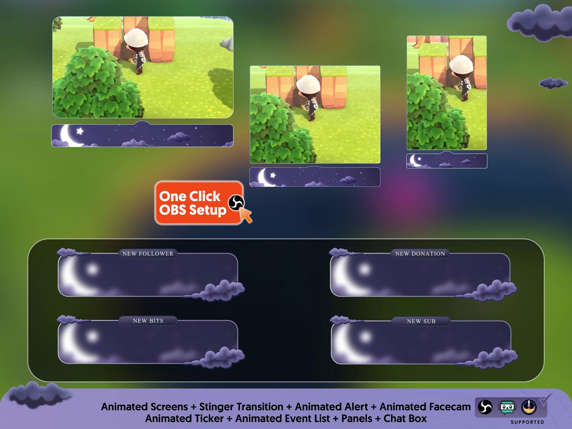 Save time and make your stream stand out with this Atmosphere Animated Stream Package/Galaxy Moon/Twitch Set! This package works perfectly with StreamlabsOBS and OBS etc.